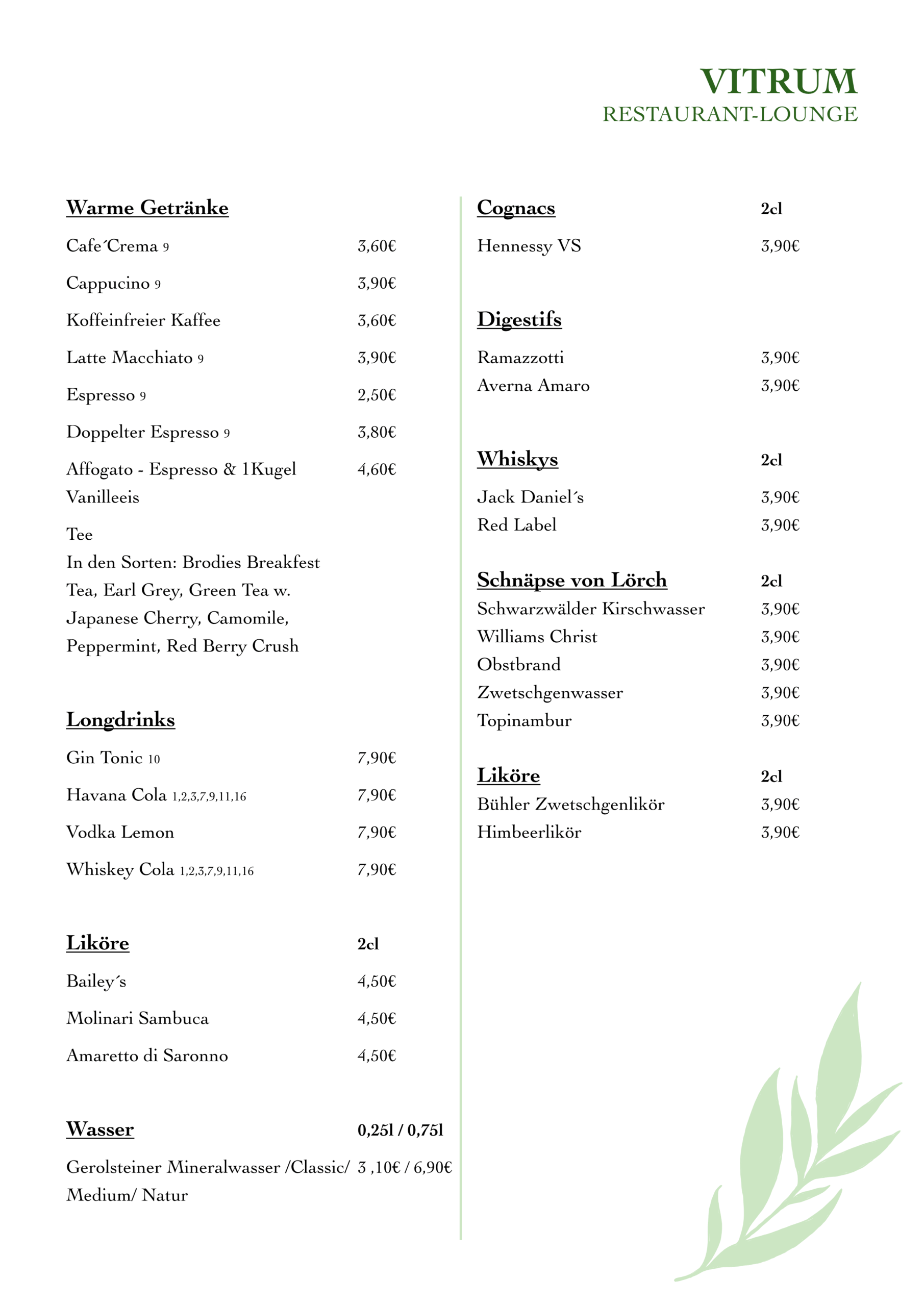 Unsere Getränke & Speisen